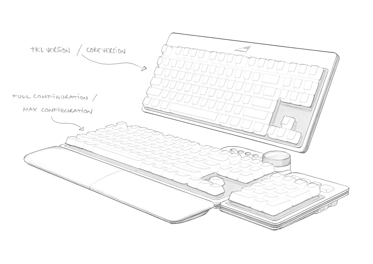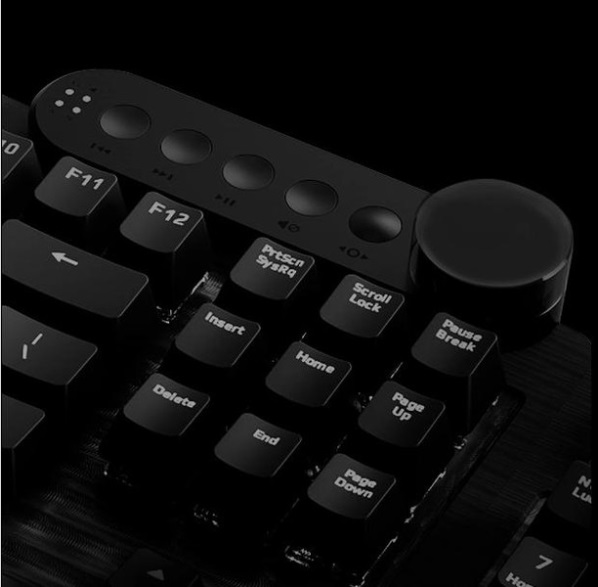 To start off, it is a modular keyboard, so you can save desk space by using it as a smaller TKL board, or you can attach the removable numpad and magnetic media dock for the full experience. The dial found on the media dock also appears to have a built-in screen.