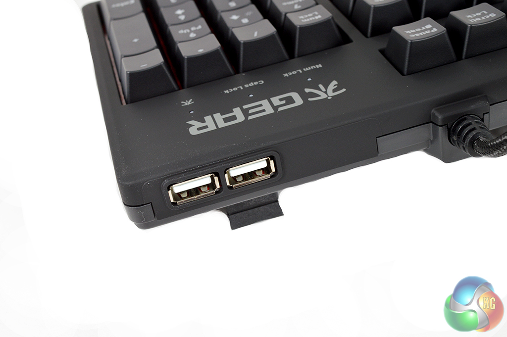On the back of the keyboard there are two USB ports. This is something that a lot of recent keyboards have skipped over so I am quite pleased to see it included here.