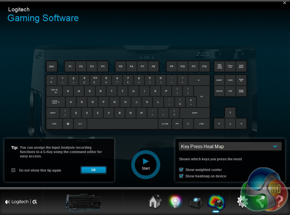 The final tab in the Logitech gaming software allows you to record what you are typing in order to see which keys you use the most. It will also measure your keypresses per minute and present you with a heat map of pressed keys. This could be particularly useful for aspiring pro-gamers or those looking to improve their typing technique as they will be able to pick up on any common mistakes made.