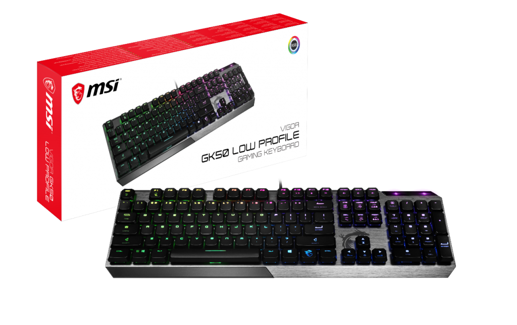 MSI is adding to its growing lineup of peripherals this week with the launch of the Vigor GK50 low profile mechanical gaming keyboard. We got our first look at this keyboard all the way back at Computex 2018, around the time the first Cherry MX low profile mechanical keyboards started hitting the market. The big difference with MSI's keyboard is the use of Kailh low profile white switches.