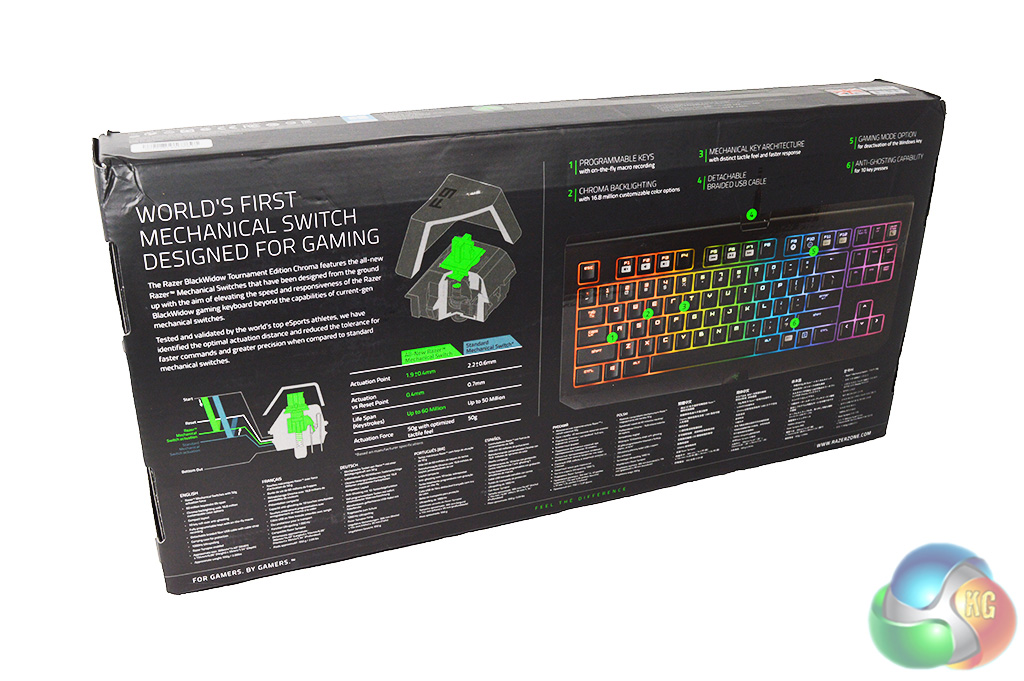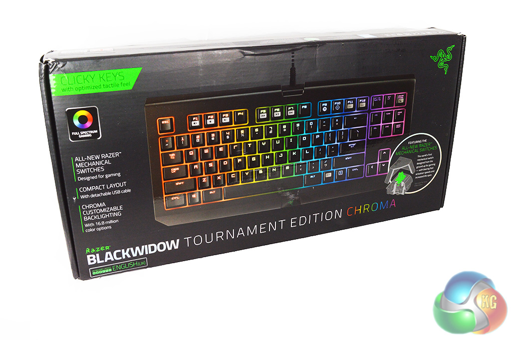 At first, the Razer Black Widow TE Chroma appears to ship in fairly standard packaging, with a view of the keyboard on the front and a break down of key features on the back.