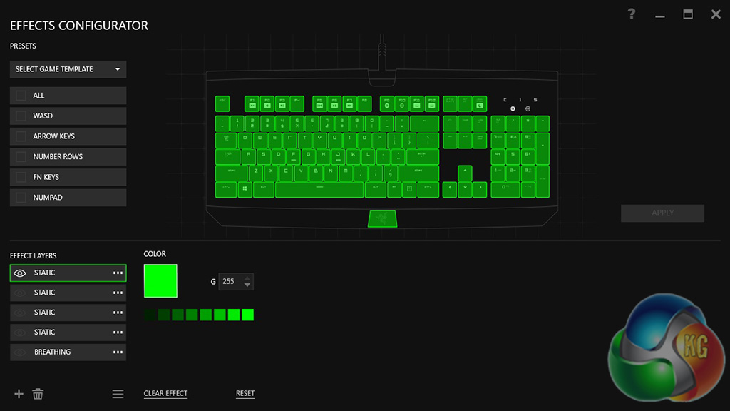 There is also an ‘effects configurator', which allows you to light up specific keys and apply different effects to parts of the keyboard.