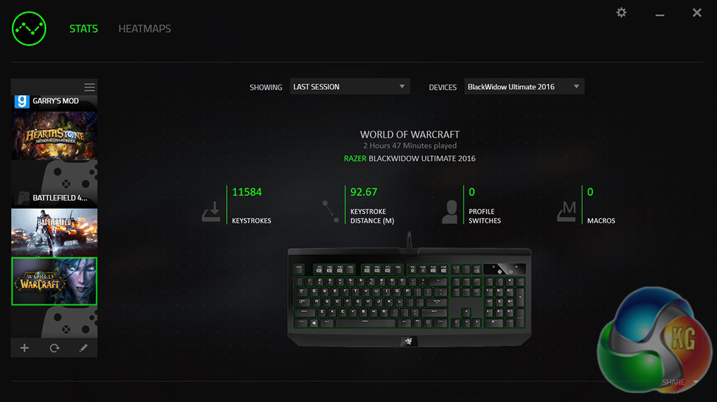 Lastly, Synapse includes a STATS tab, which allows you to see how any keystrokes you have made in certain games. It will also tell you how many macros you have set up for each game as well. As you can see from the screenshot above, I have spent some time in World of Warcraft since having this keyboard plugged in, resulting in close to 20,000 keystrokes in total.