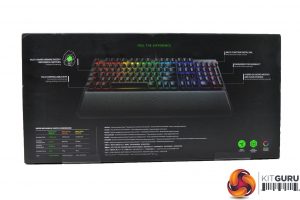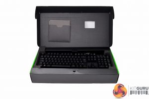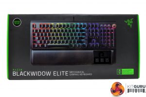 The Razer BlackWidow Elite ships in the typical keyboard packaging we’ve all come to expect. Things are kept simple, with large images of what you’ll find inside. The box flips open and you’ll find the keyboard itself alongside accompanying accessories.