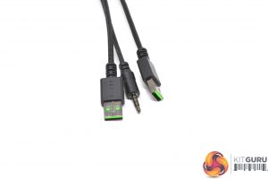 Due to the USB and audio pass-through ports, there are three lengthy cables to be found coming out of the BlackWidow Elite – 1x USB for the keyboard itself, 1x USB for the pass-through port and 1x audio cable for the headphone jack.