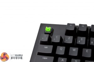 Moving on to the keyboard itself, we can see that the BlackWidow has gone through quite the design change this time around. While past revisions of the BlackWidow have been primarily built out of plastic, Razer has opted for a more premium design for the Elite. Instead of plastic housing, you’ll find a brushed aluminium face plate at the top, which removes any keyboard flex from the equation. You will still find a plastic body underneath, but it feels a lot sturdier compared to other versions of the BlackWidow.