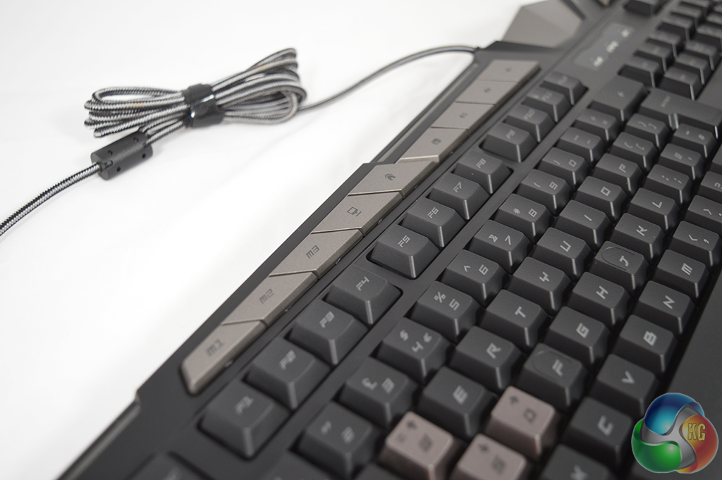 On the left-hand side of the board you will find a row of five G-keys. These are fully configurable, so you can assign shortcuts and macros to help in games. You can also have three different profiles locked and loaded, with the ability to quickly switch between them thanks to the three profile switch buttons along the top of the keyboard. You can also use the record key to quickly set up some simple macros without needing to head into the software.
