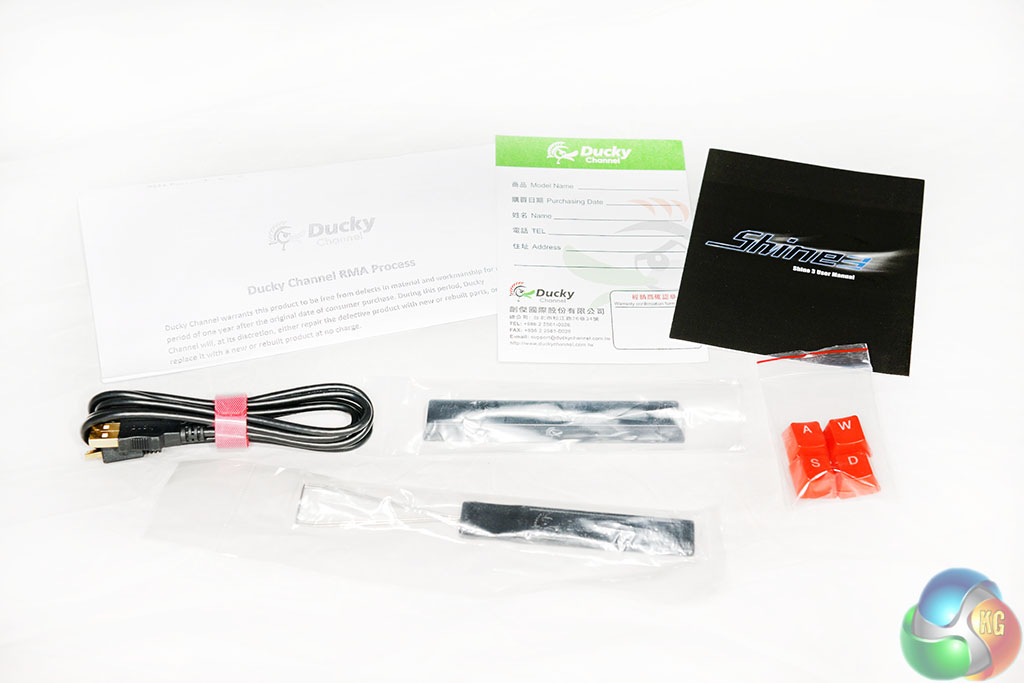 Ducky make their keyboards to support a wide range of MX switch styles. The company are using MX Green switches in our review sample – as shown by the sticker on the side of the box above.