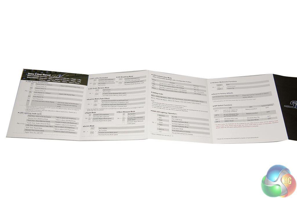 Each of the keys are UV coated with white LED's which we will take a look at in more detail shortly. The keycaps are engraved with a double layer laser print for extra durability. The board supports Keys N-Key rollover.