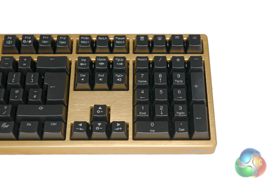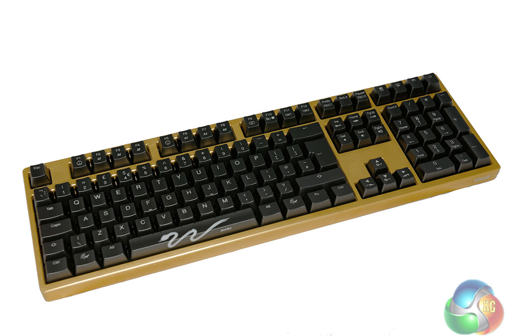 The first thing I noticed, was the weight of the keyboard. It is reassuringly heavy and beautifully finished with painted gold over the aluminum chassis underneath. The DK 9008 measures 442 mm x 140 mm x 41.5 mm (LxWxH) and weighs 1.4kg.