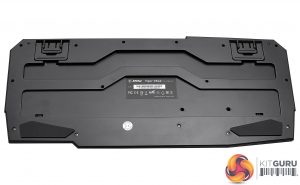 Dual-height keyboard feet at the rear and anti-slip rubber patches at the front, complete the underside.