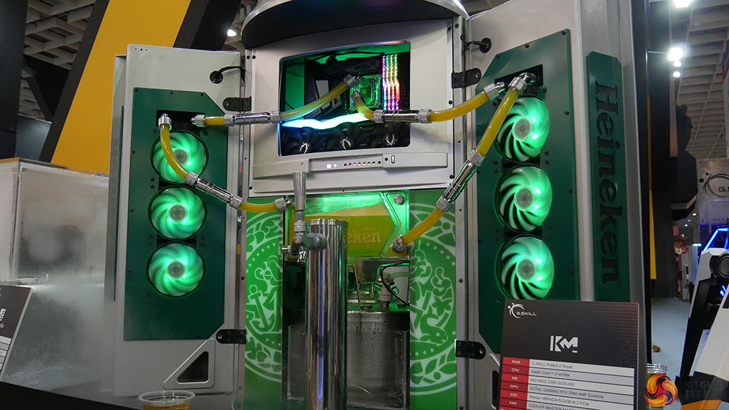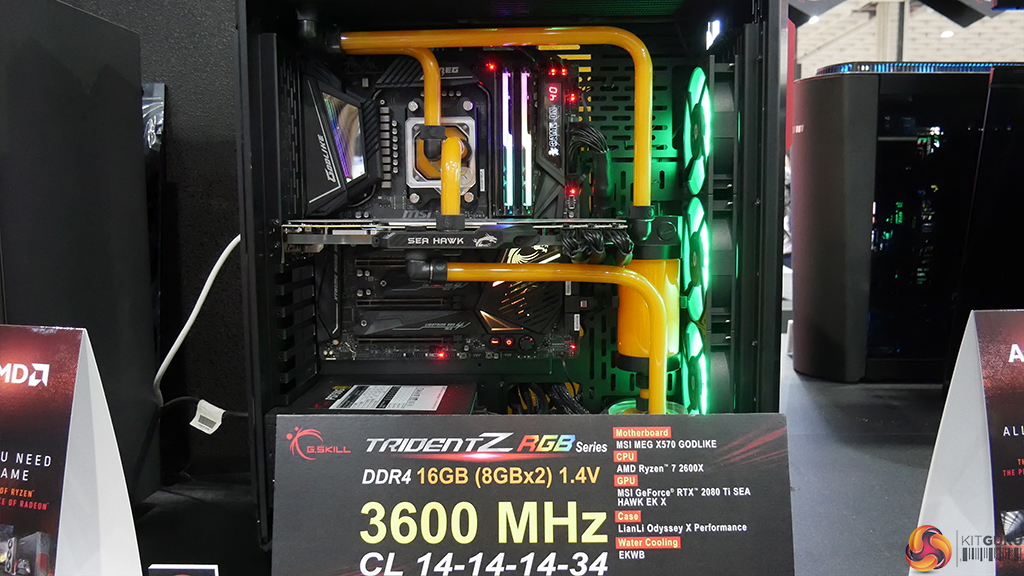 G.Skill always has something interesting to show off but this year was particularly impressive. On the extreme overclocking side of things, we got a look at a system running 384GB of DDR4 RAM in a 32GBx12 configuration, all running at 4GHz, which is insanely high given the capacity and number of modules involved. This was achieved through an ASUS ROG Dominus Extreme motherboard with an Intel Xeon W-3175X CPU.