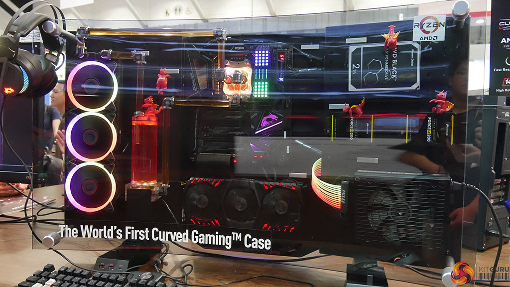 On the case side of things, MSI announced the MEG Alchemy 700X PC case, which is being touted as the world's first curved gaming case. It is an open air chassis that lets you separate your components and lay them out in any way you see fit. The build we saw in the video showcases MSI's now GODLIKE X570 motherboard and the MSI RX Vega 56 with hard tube water cooling running across.