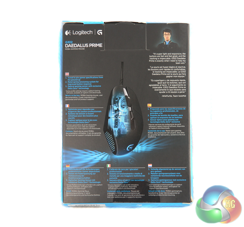 On the back of the box you will find a quote from ‘WildTurtle', who plays for Team SoloMid. This isn't anything new, we tend to see endorsements from pro-gamers on the back of many peripheral boxes these days.