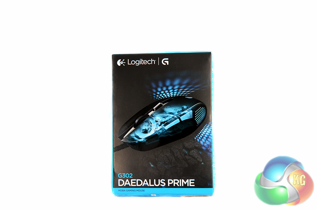 The Logitech G302 Daedalus Prime ships in a small rectangular box with an image of the product visible on the front.