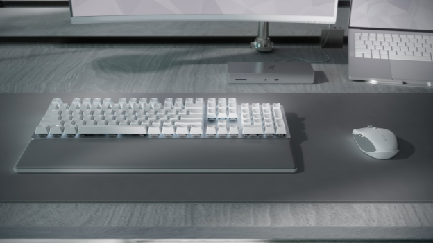 The Razer Pro Type Ultra is the latest keyboard in the line-up, offering a sleek white and grey colour scheme, silent mechanical switches rated for up to 80 million presses, a plush leatherette wrist rest and keycaps with a soft-touch coating.