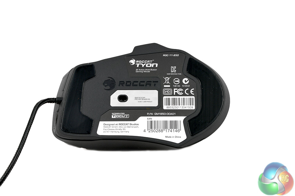 On the bottom side you'll find the Pro-Aim R3 sensor, which Roccat has been using in its mice for some time now. You'll also find some soft pads, which help the mouse glide across the Raivo mouse mat with ease. However, I've found that dust will built up around the edge of these pads fairly quickly.
