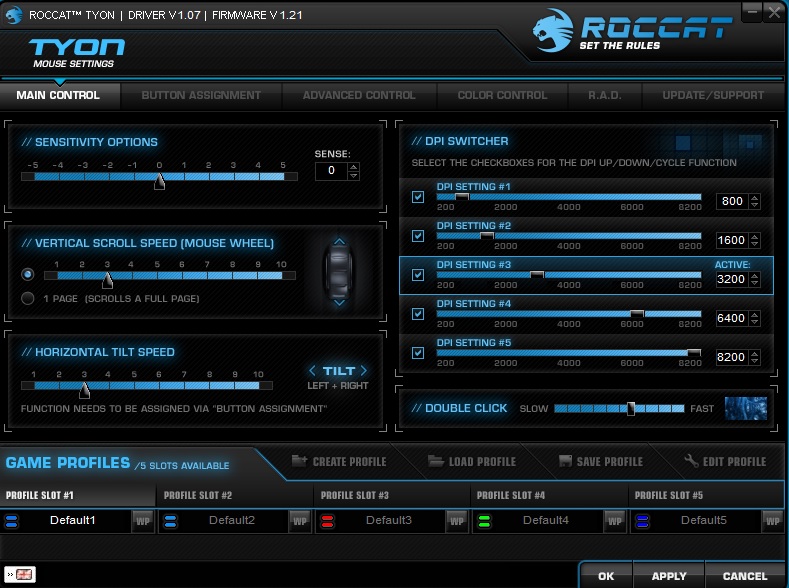 The Roccat Tyon driver software is simple to use and contains a nice layout. It's not going to blow you away or anything but it definitely gets the job done.