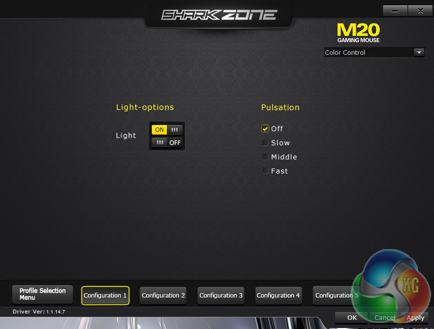 In the Color Control menu, you can turn the lights on or off and set up a pulsation effect. I quite liked the yellow lights found on the M20, although I wasn't really a fan of the pulsation effect so I left that switched off.