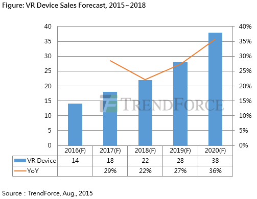 Using the eight million first-year sales figures of Microsoft Kinect in 2010 as a base for comparison, TrendForce estimates that VR devices will enjoy even higher sales next year.