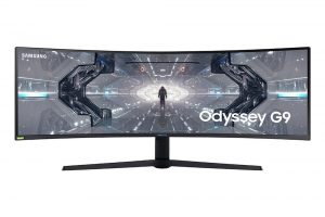 Samsung's Odyssey G9 features an 49-inch screen and is, according to the company, the “world’s first Dual Quad High-Definition (DQHD; 5120×1440 resolution) gaming monitor” that offers a 1000R curvature. The panel boasts a 1ms response time, 240Hz refresh rate, and comes with support for NVIDIA G-SYNC and Adaptive Sync via DP1.4. The G9 also has DisplayHDR 1000 certification and a DCI coverage of 95%.