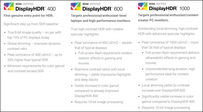 DisplayHDR 1.0 is comprised of three unique categories, spanning DisplayHDR 400 as its lower end baseline to its midrange DisplayHDR 600 and high-end DisplayHDR 1000. These are built using a pre-established set of parameters that distinguish the quality for each display and take the complicated research out of the consumer’s hands.
