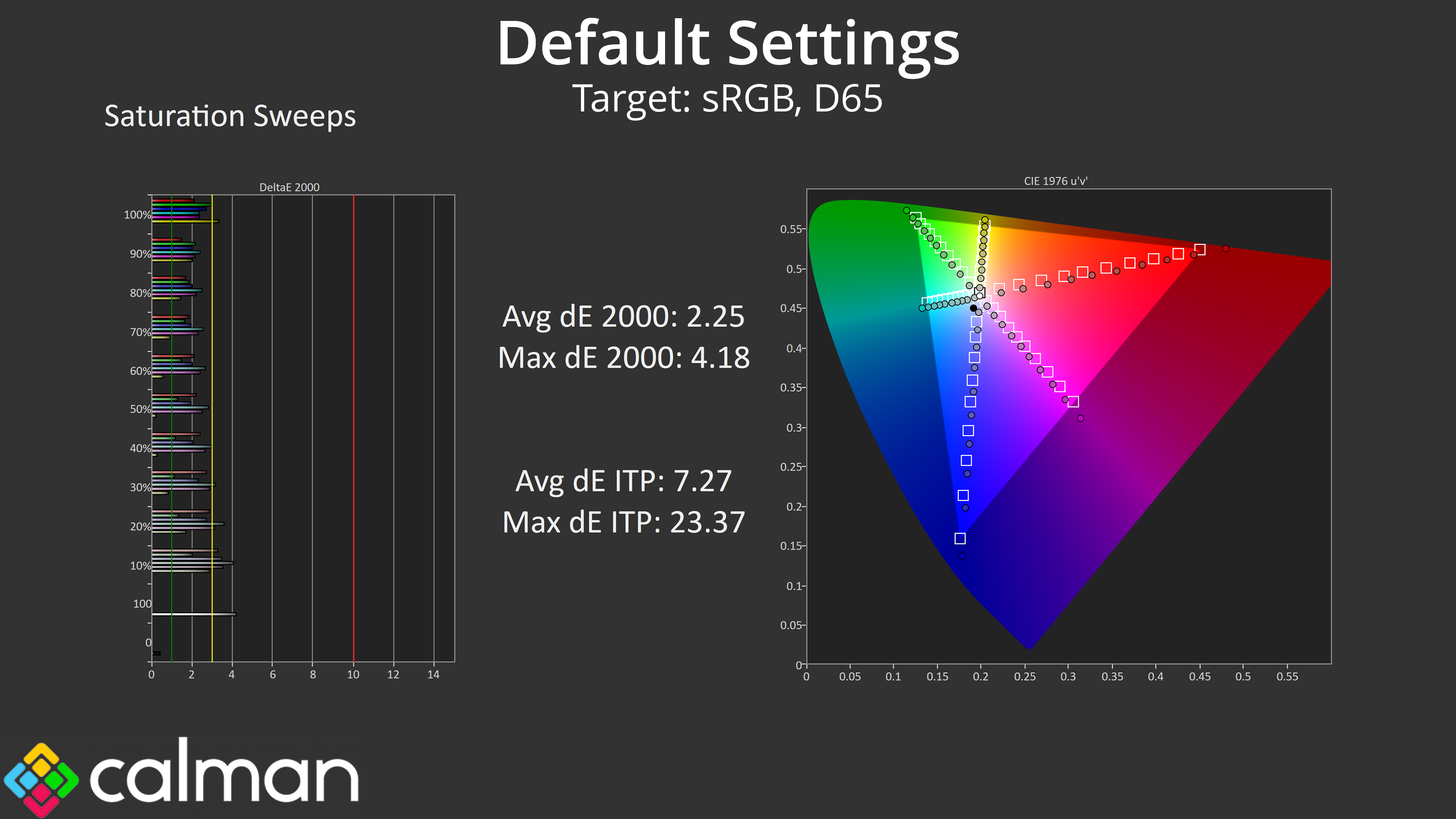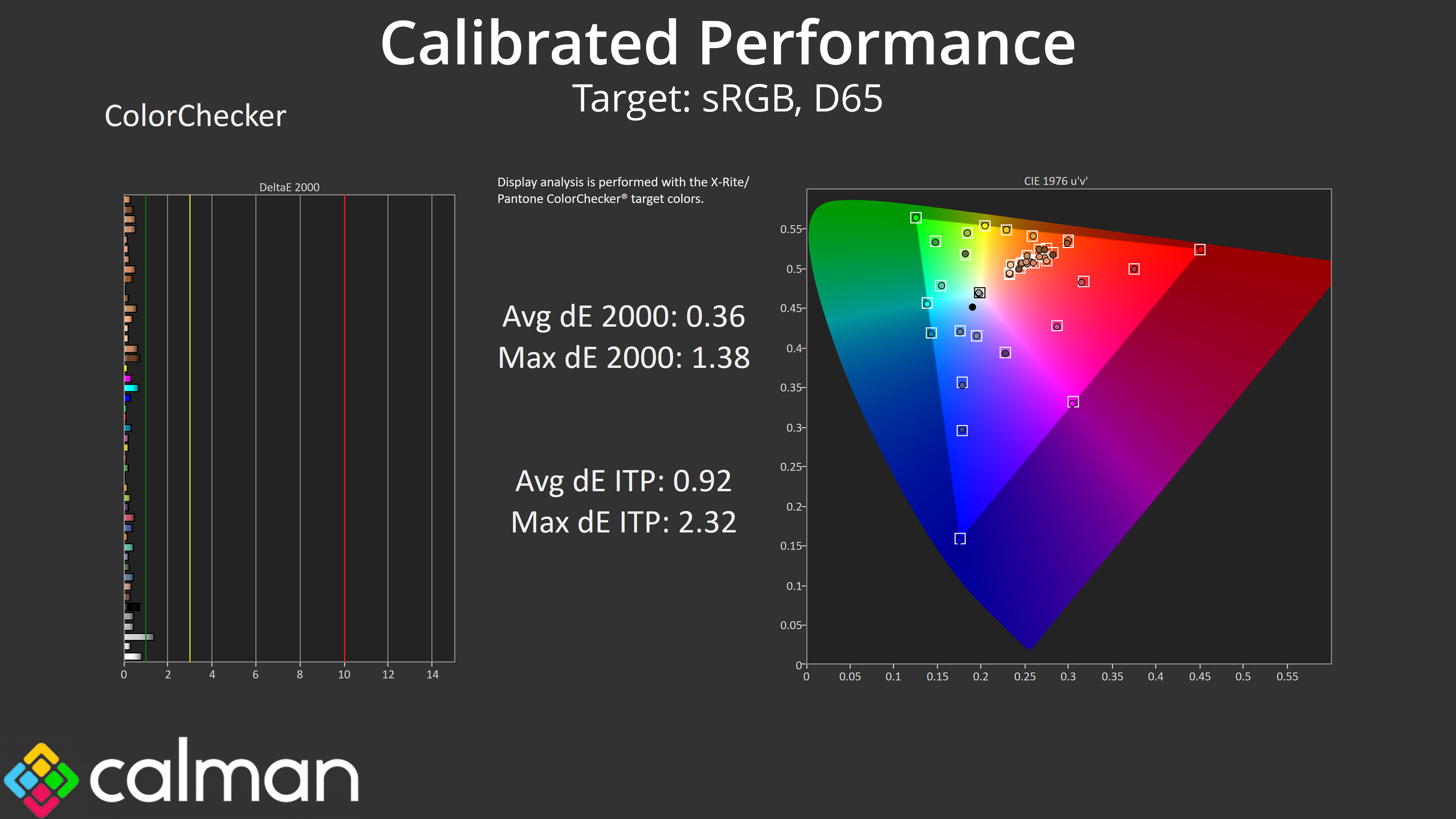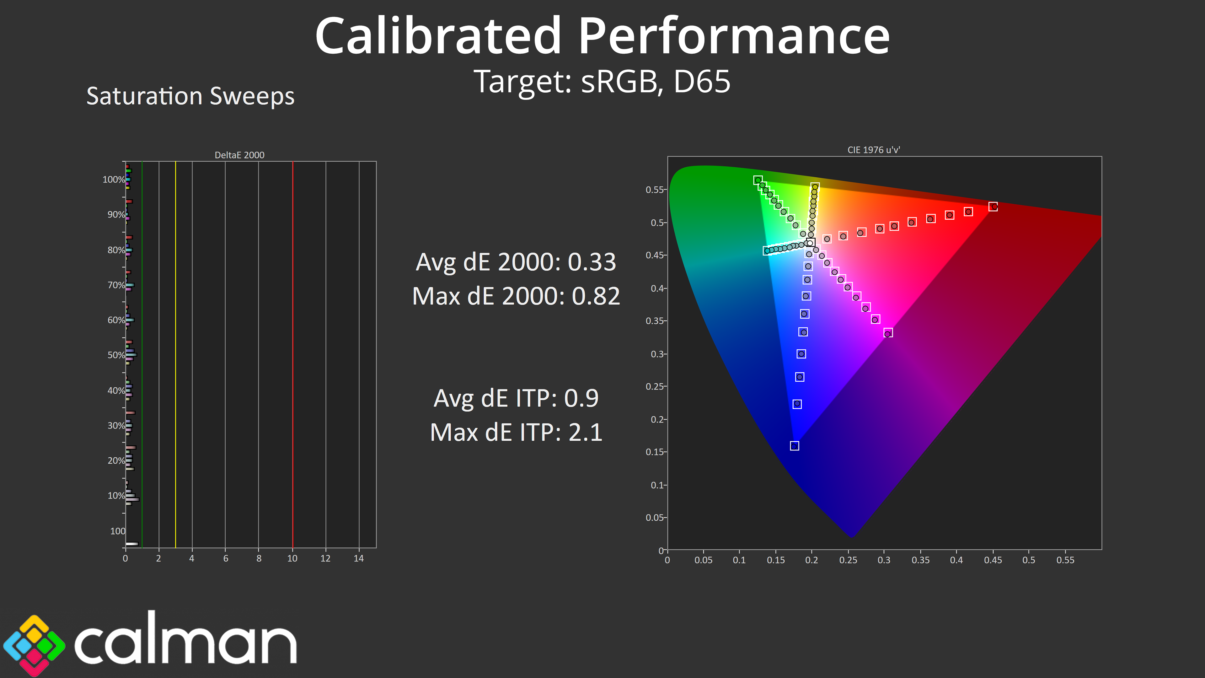 That leaves us with a full calibration to show the best-possible results for this panel, and the figures are stunning, with average error rates dropping below 1 across the board, and even lower than that for the saturation and colour accuracy metrics.
