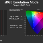 The good news is that AOC has included an sRGB mode in the OSD, and this does a good job at clamping the gamut to prevent oversaturation. Colour balance is unchanged, though gamma is now slightly lower than before, but at least the initial dip has been eliminated. Overall saturation and colour accuracy average deltaEs are improved, but not by much over stock.