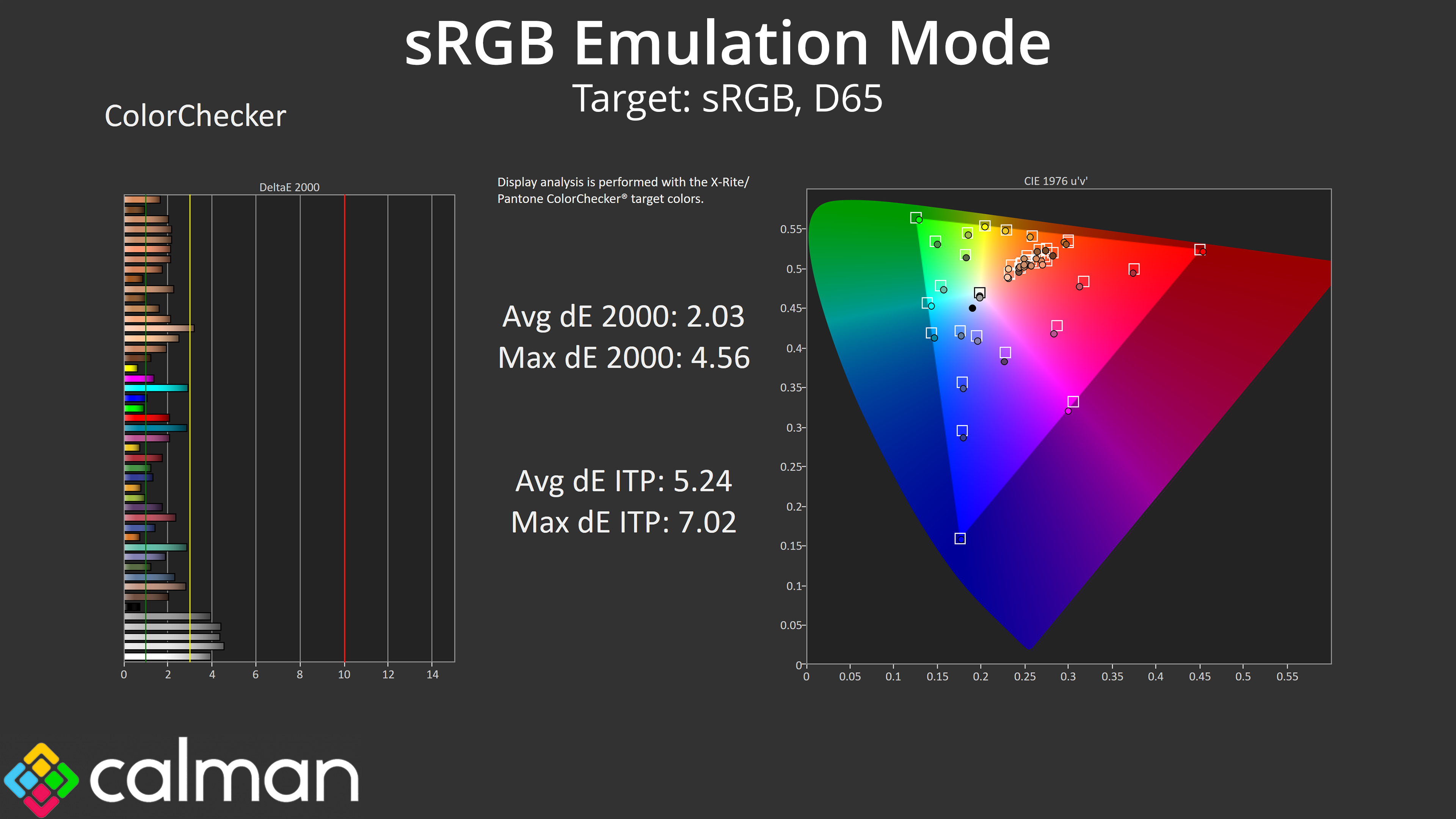 Likewise, general colour accuracy is solid but not class leading, this time with an average dE 2000 of 2.37.
