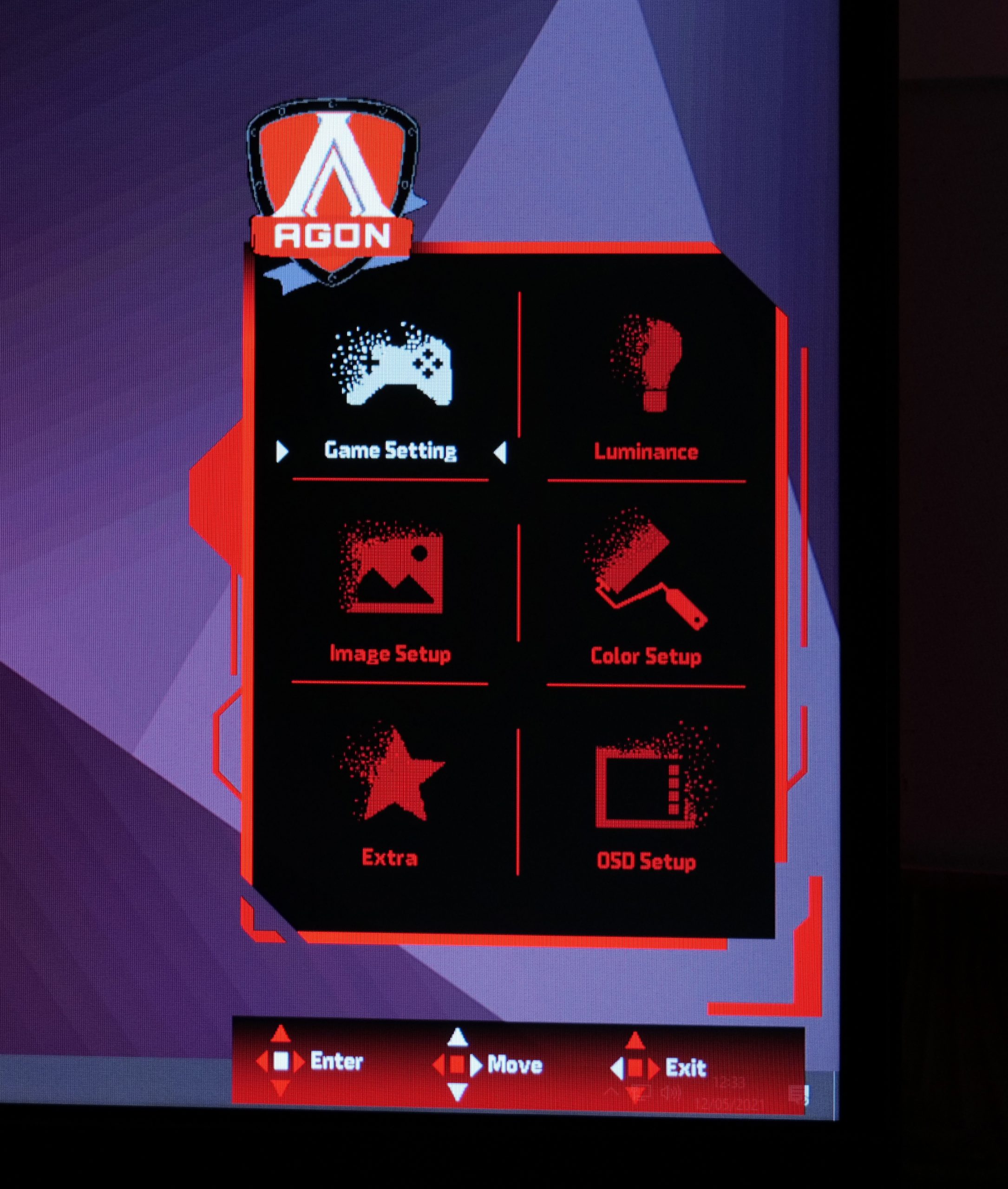 The OSD itself is split into six sections – Game Setting, Luminance, Image Setup, Color Setup, Extra, and OSD Setup:
