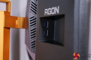 As for the connectivity options, AOC includes 2x HDMI 2.1, 1x DisplayPort 1.4, a headphone jack, USB-B upstream, and then two Type-A downstreams on the back, with another couple positioned off to the right-hand side for easier access. All three video inputs support 600Hz at 1080p so you're not limited there, but there's no USB-C or KVM functionality built-in. Ordinarily I'd complain about that, but given this is a very specific gaming-focused monitor rather than something you'd use more generally, I don't think it is a massive concern.
