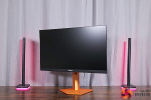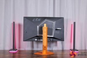 There is also some RGB lighting on the back of the panel, which by default lights up in an orangey gold colour to match, but you can configure this however you'd like in the OSD.