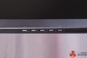 As for connectivity, we find a total of three video inputs – one DisplayPort 1.4, and then two HDMI 2.1, so there’s no issues getting the full refresh rate on any of those ports. Then there’s also a small two-port USB hub, but that’s it – so no USB-C or KVM functionality, which is a slight shame but it’s not really a surprise given the price point.