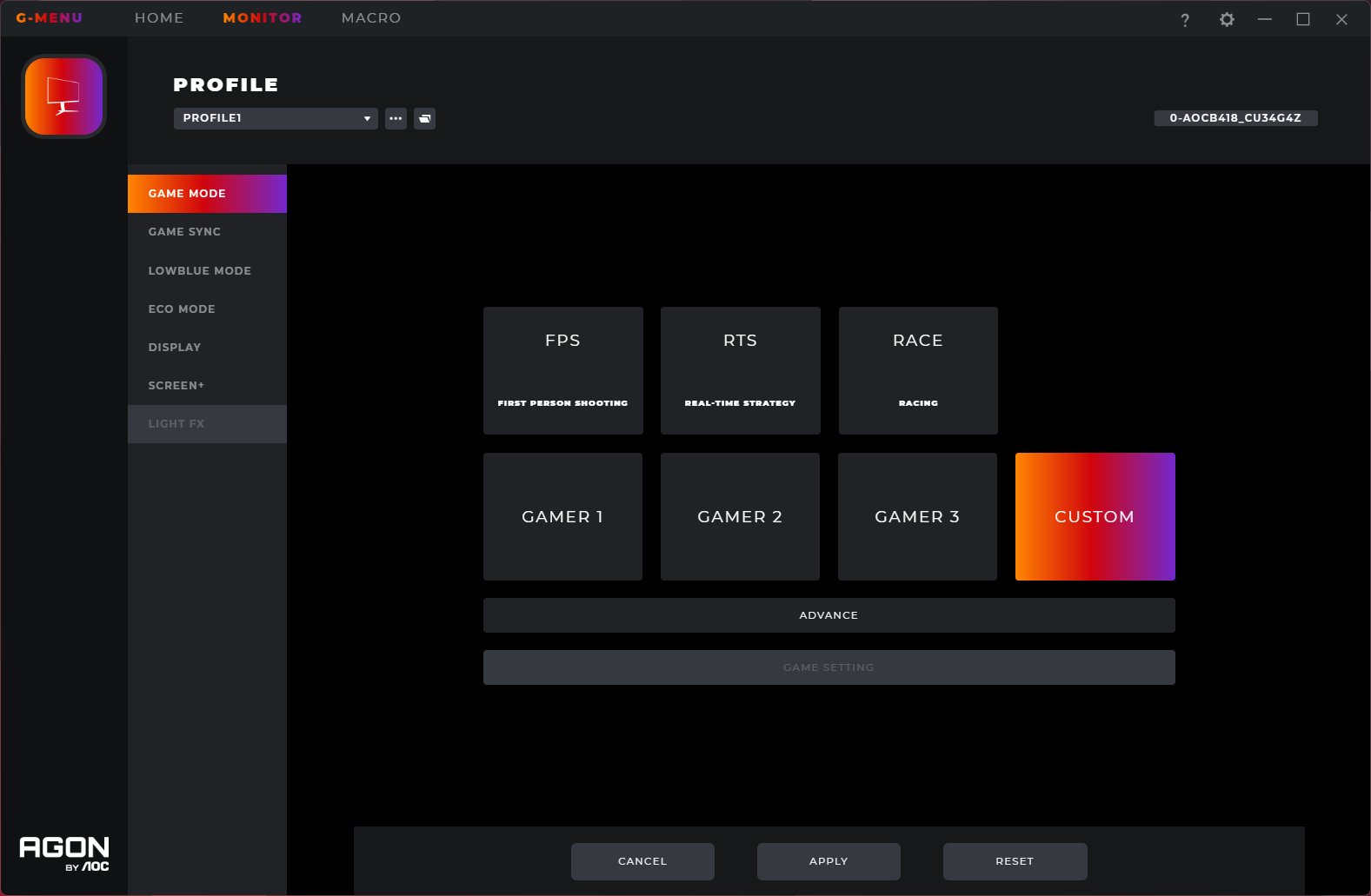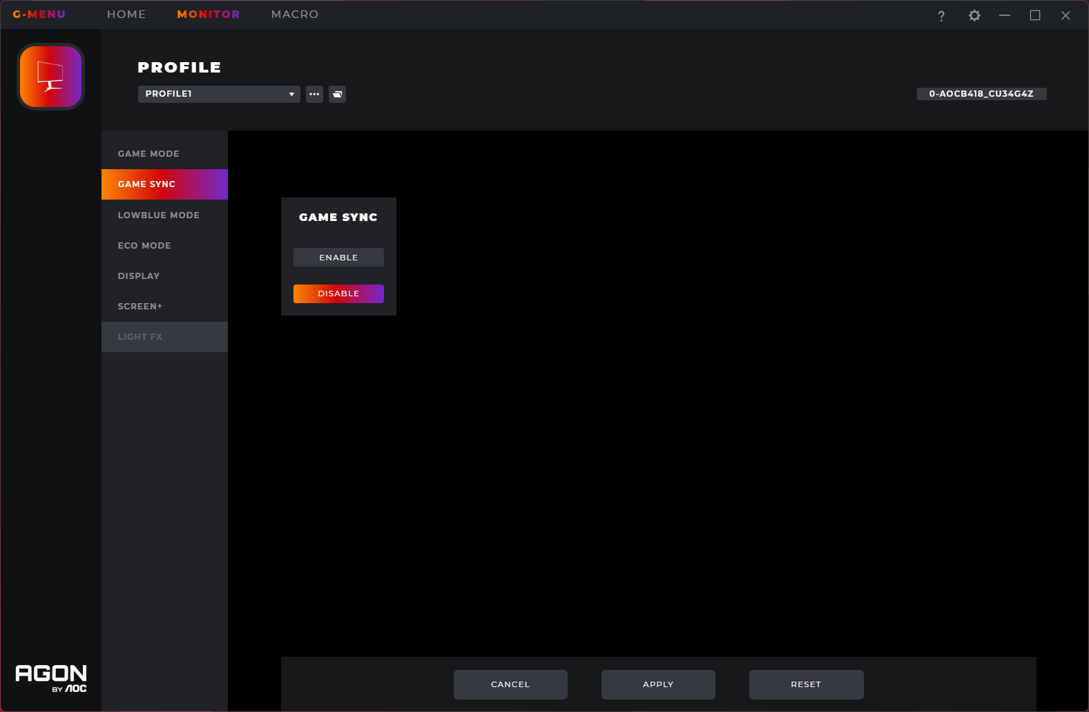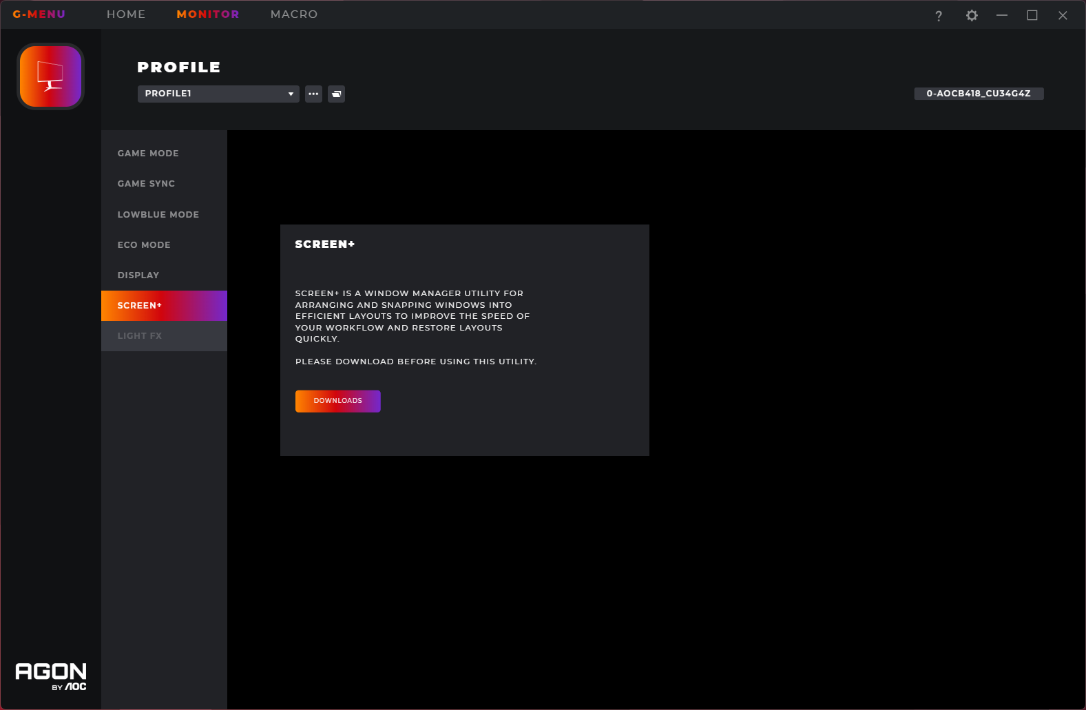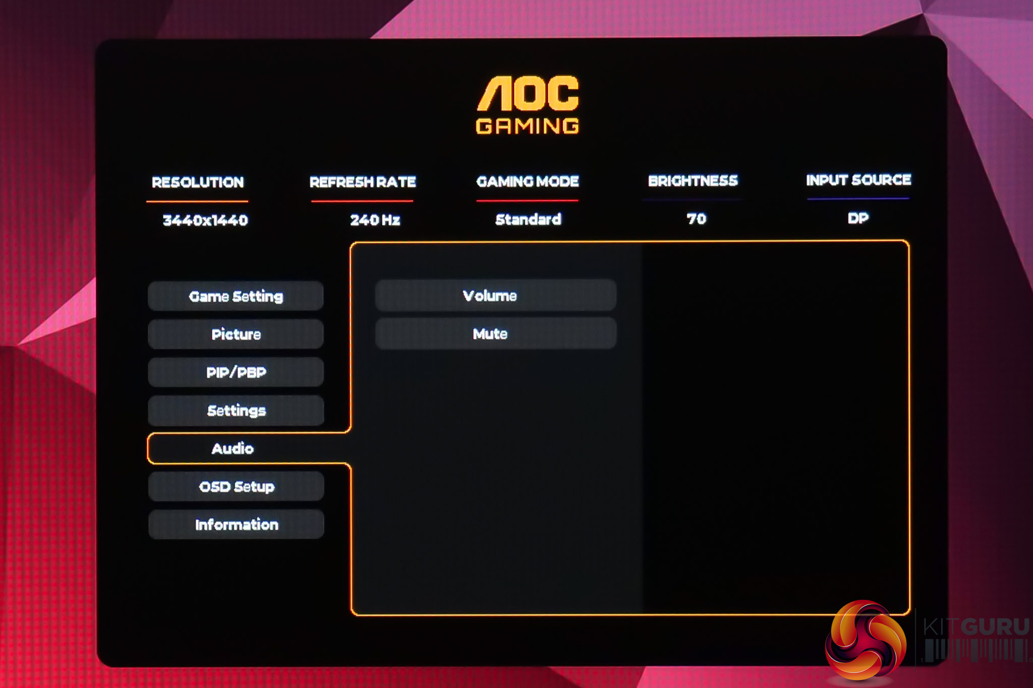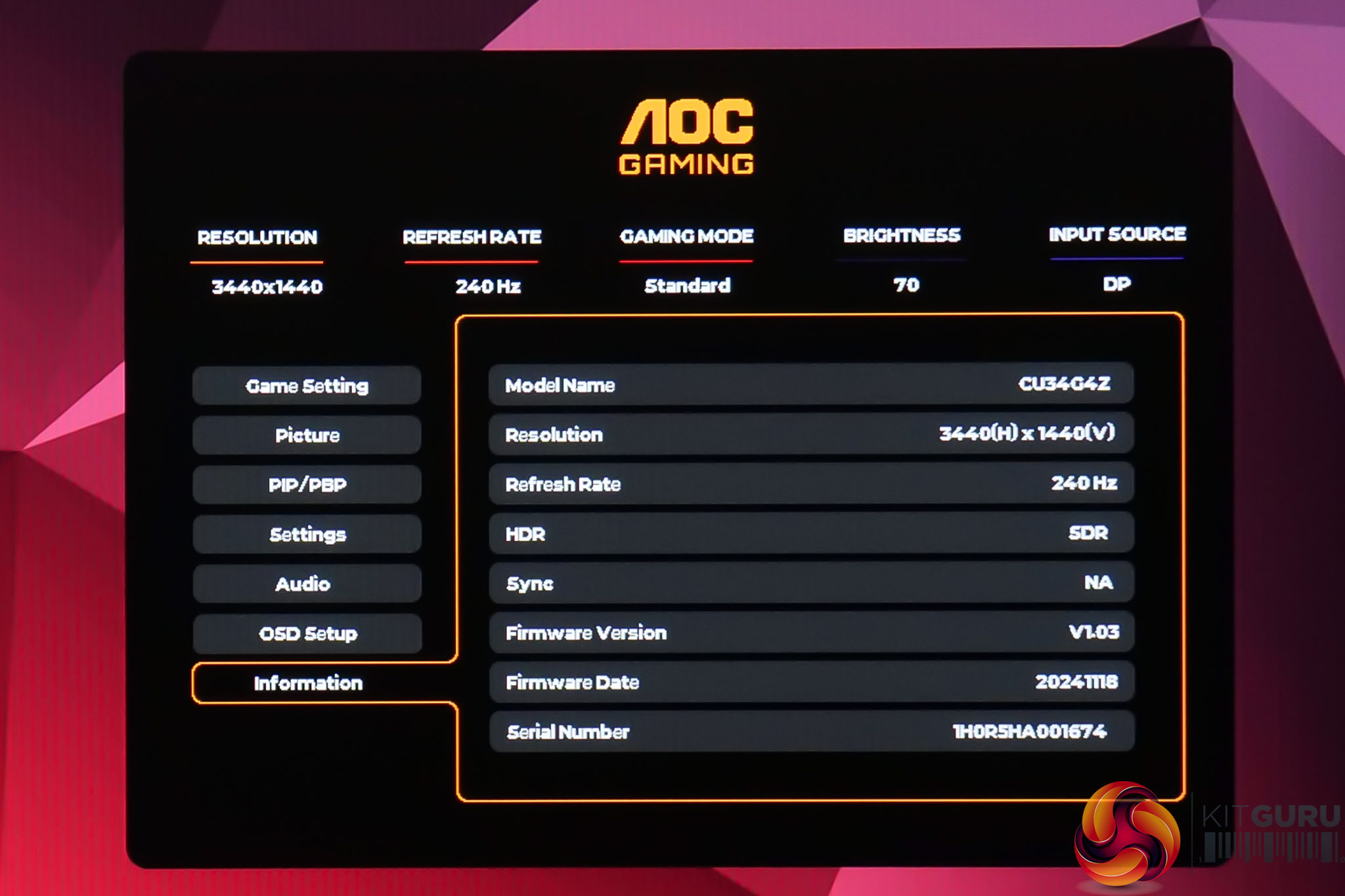 AOC also offers its GMenu software for use with the CU34G4Z, providing the same controls as the OSD, but for use directly from the desktop – a nice addition. It can also be used to update the monitor's firmware, a feature I always like to see included, so credit to AOC there.