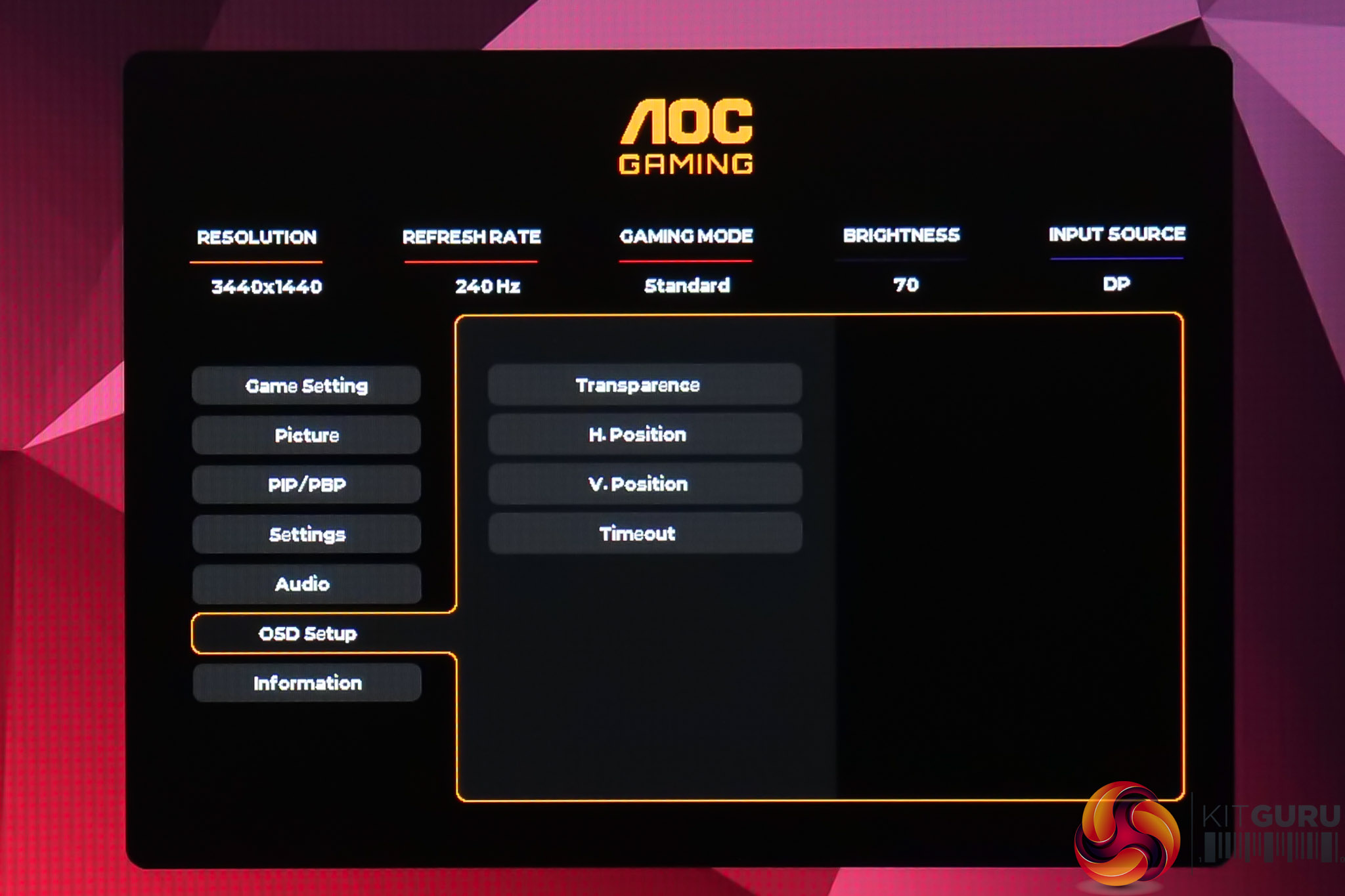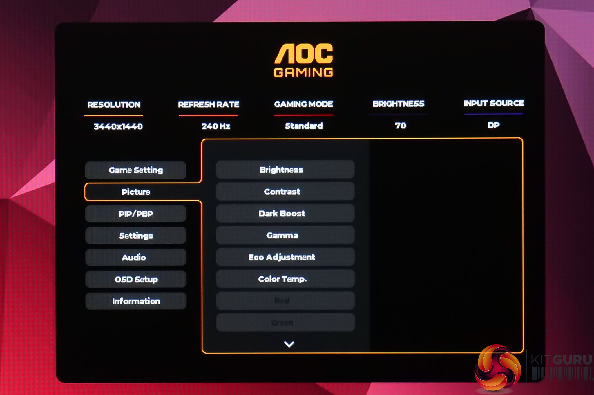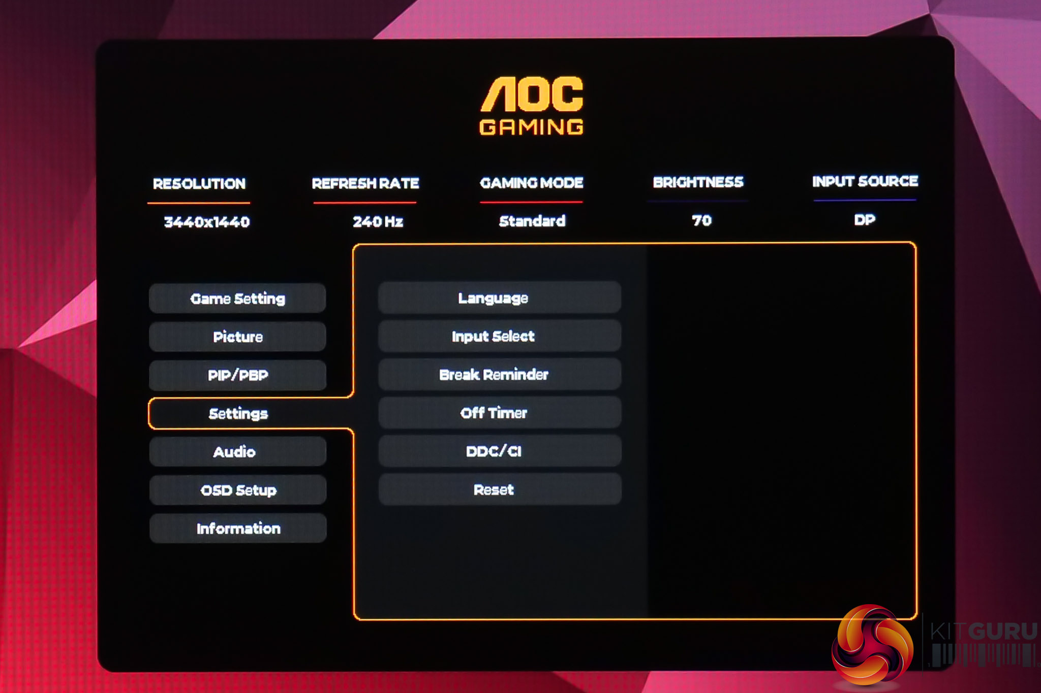 AOC recently overhauled its OSD system, offering settings that are split over seven main tabs: