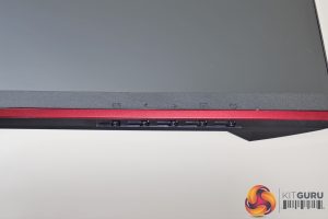 We can also note the five physical buttons on the underside of the front chin. These control the OSD, with no joystick on offer here from AOC, another cost-saving exercise.