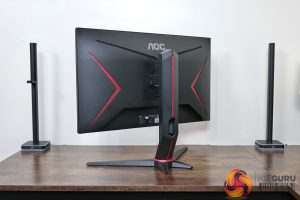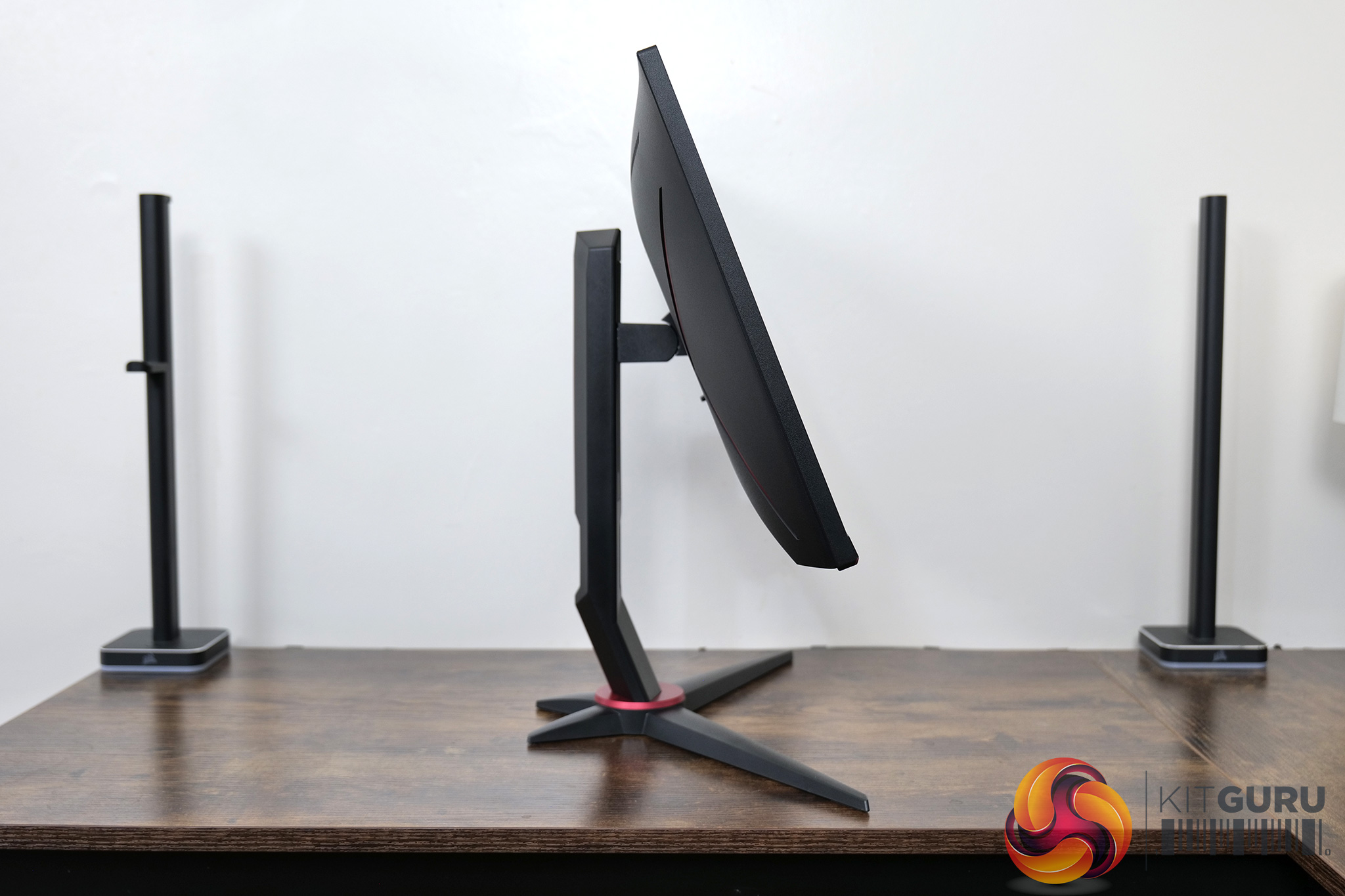 Connectivity is an area where clear cutbacks have been made. The Q24G2A offers just two display inputs, with one HDMI 2.0 and one DisplayPort 1.2. The HDMI 2.0 port limits the refresh rate to 144Hz, but 165Hz is obviously possible vis DisplayPort 1.4. There are no other USB passthrough ports, USB-C or anything like that – a 3.5mm audio jack is the only other connection on offer. It really is a very basic setup, even for the price you’re not get much in the way of options here.