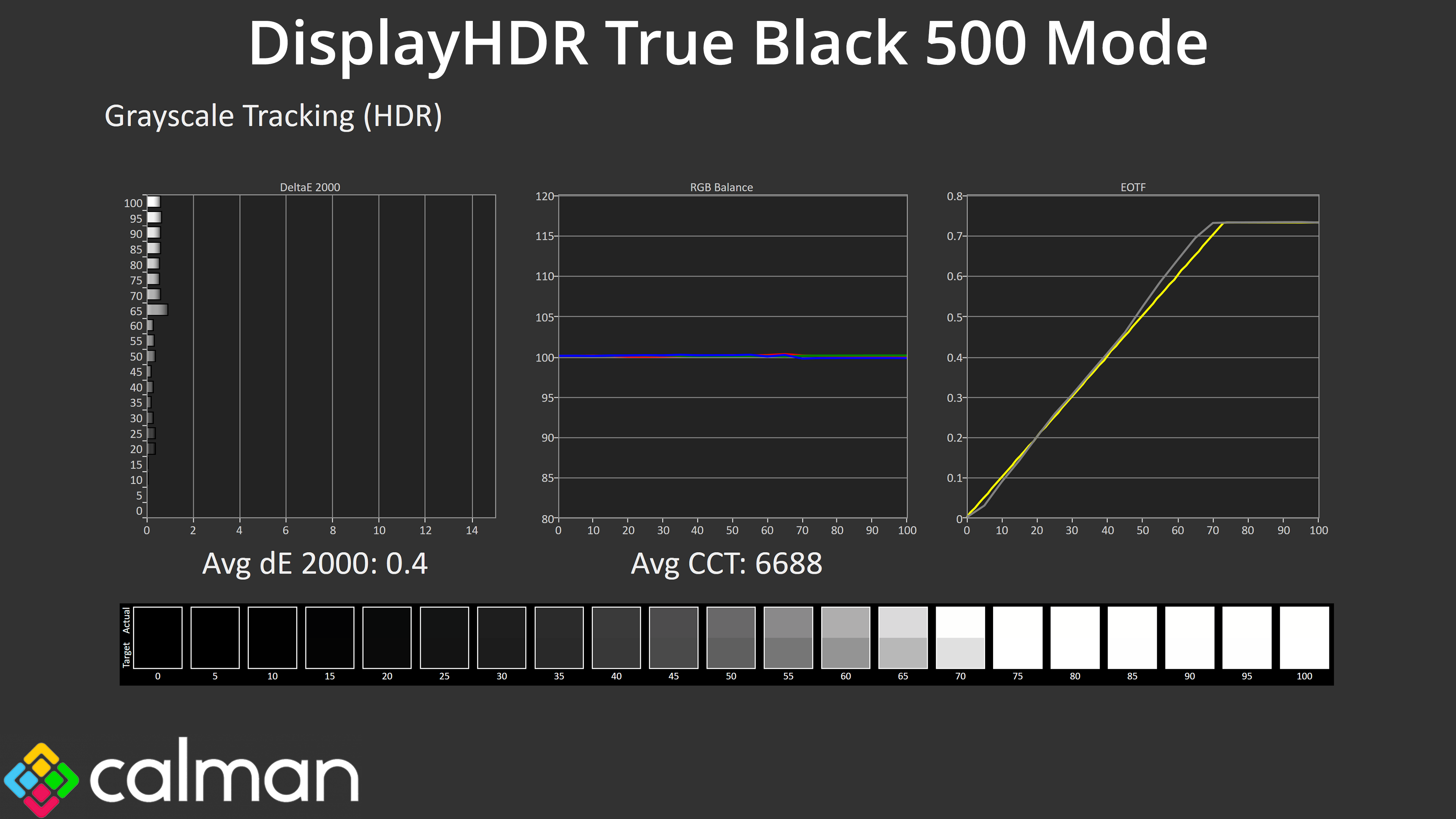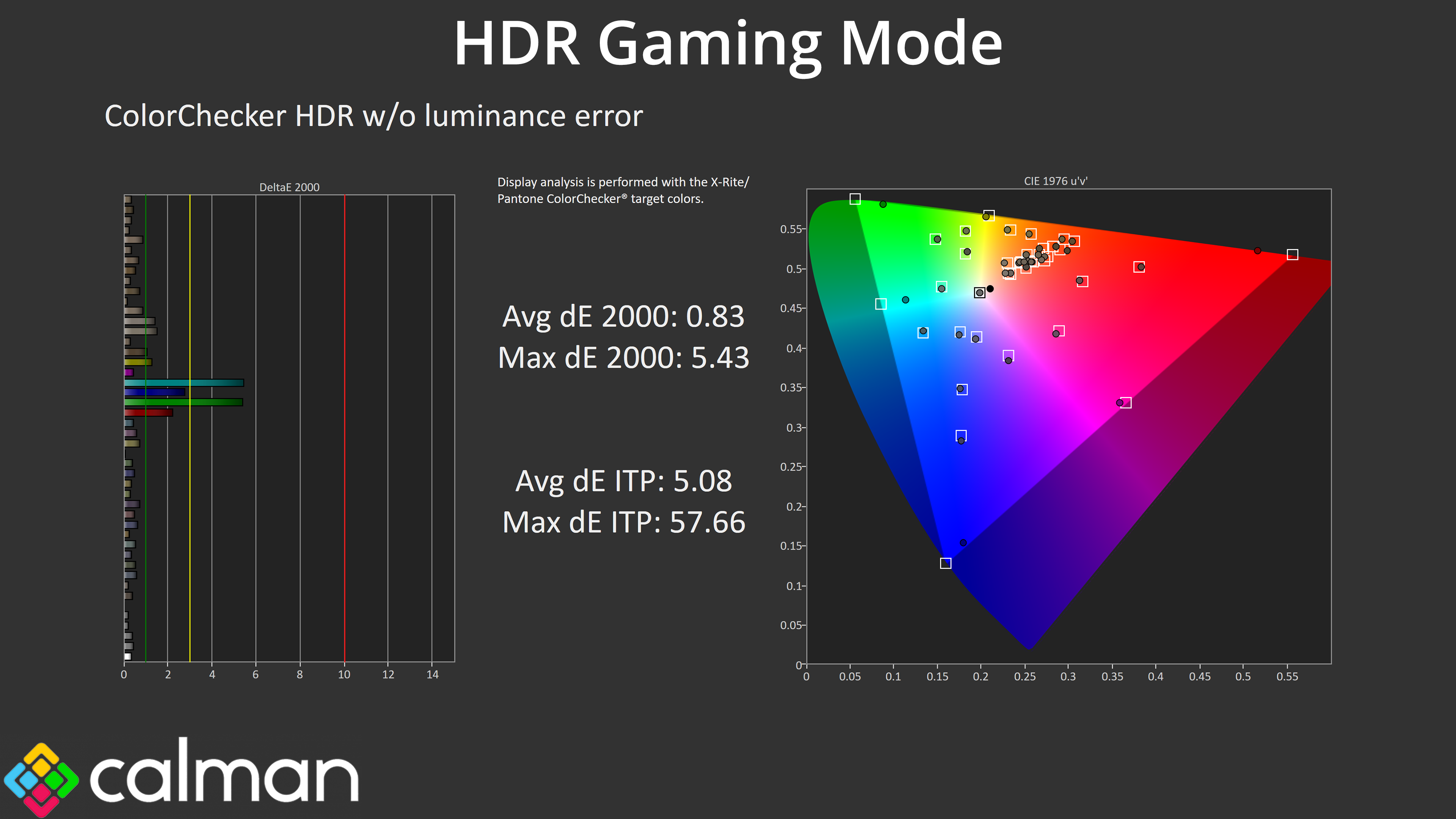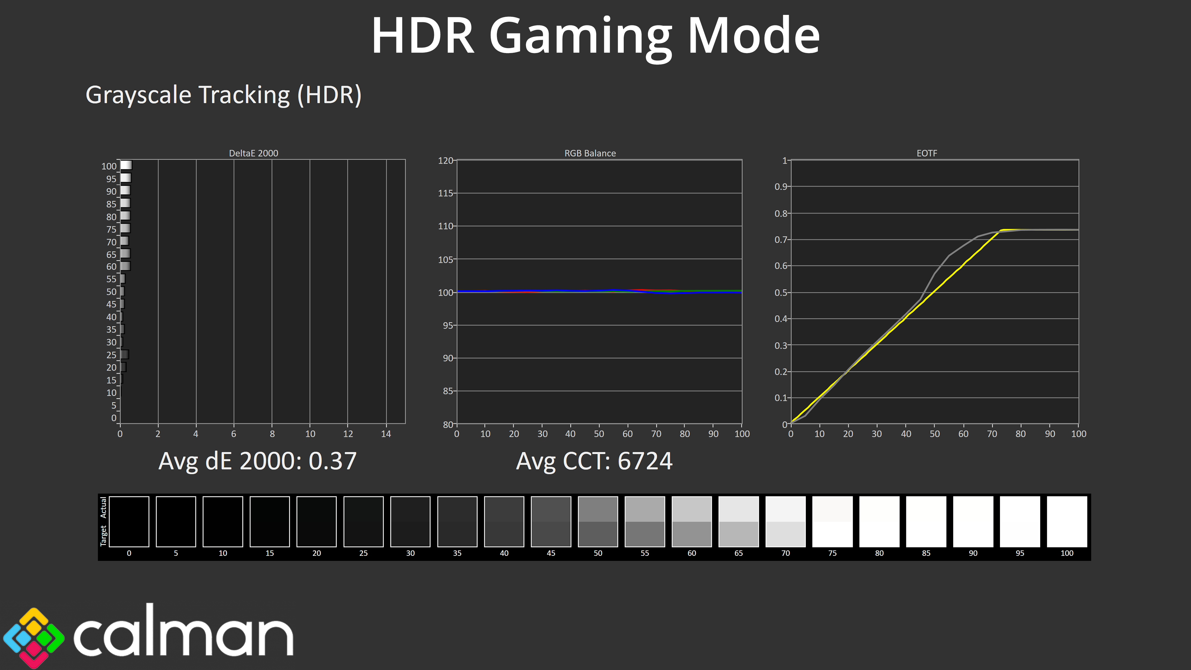 Of course, the EOTF curve plays a big part here too, with the HDR Gaming mode looking pretty accurate but with a slight bump to brightness for mid-greys.