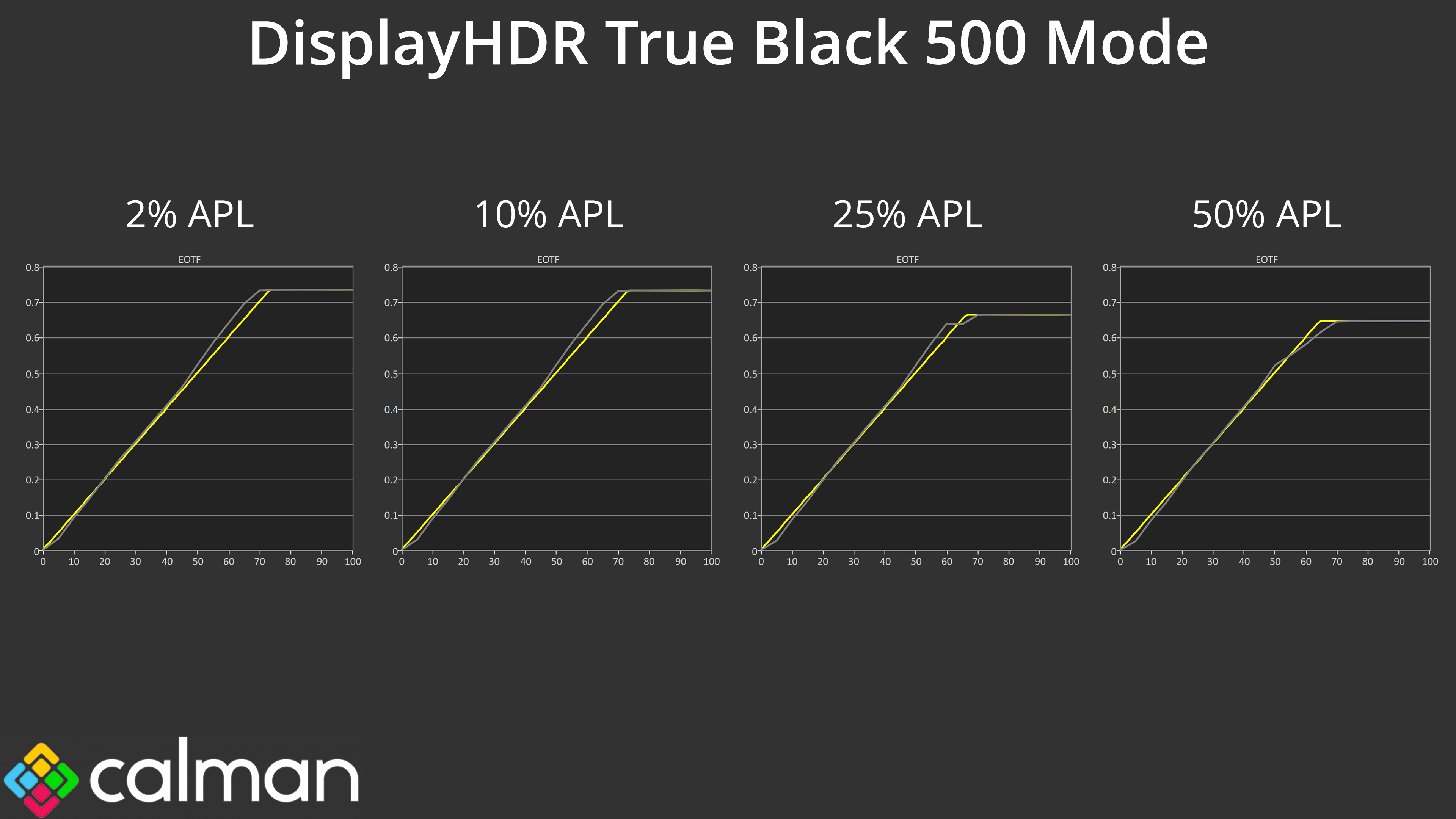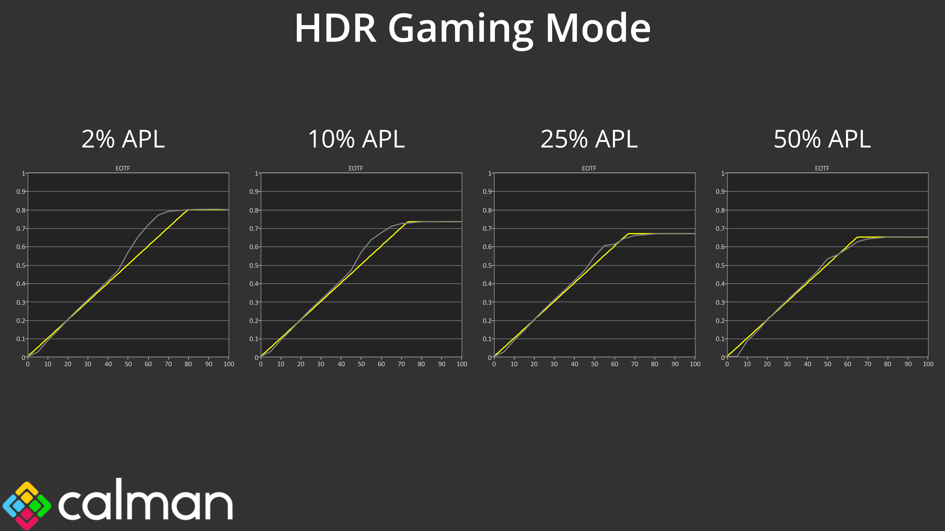 Here we look at the EOTF curve across a range of APLs, with the HDR Gaming mode looking very good across the board – some over-brightening at lower APLs which I don't mind at all, and only the slightest roll-off at larger APLs. Very good performance, overall.