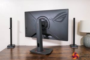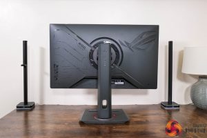 Starting with the design, as we'd expect from an ASUS ROG product, there's the usual gamer flair in the form of the large ROG logo and some PCB-inspired accents on the rear of the monitor. I think it looks quite good personally, while the front is home to a three-sided frameless design, with a chin that measures approximately 18mm thick.