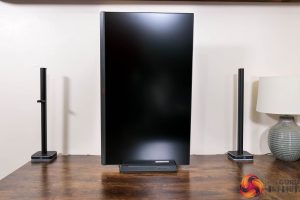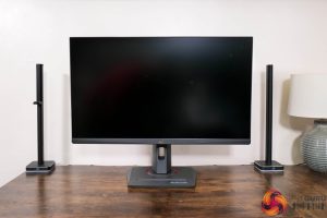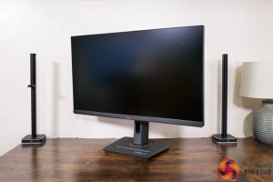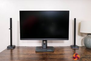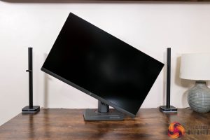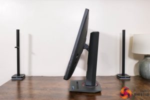 The included stand offers the full array of ergonomic adjustments, including up to 120mm of height adjust, 45 degrees of swivel both left and right, tilt from -5 to +20 degrees, alongside 90 degree pivot functionality if you want to use the monitor vertically. VESA 100×100 mounts are also supported.