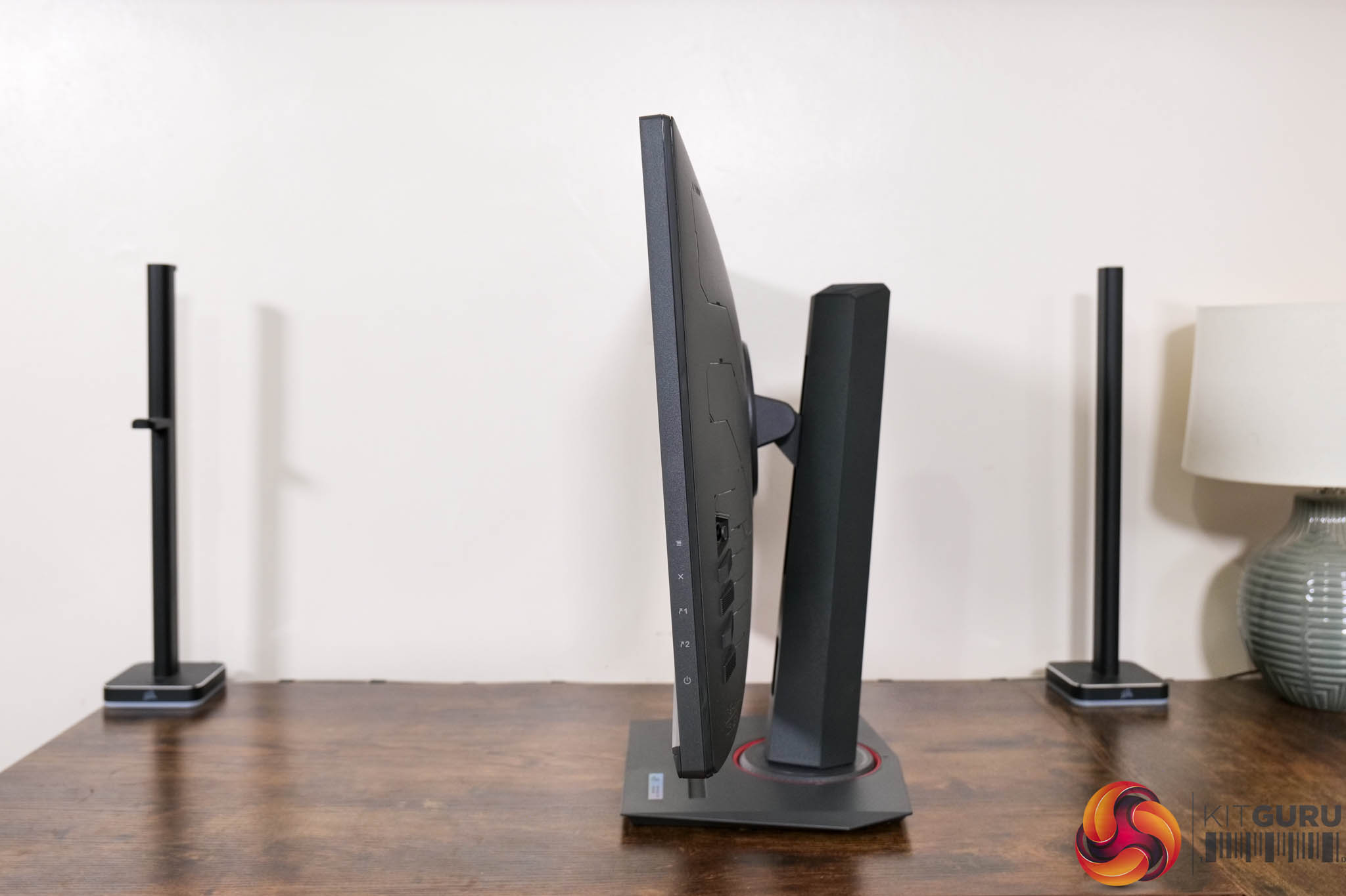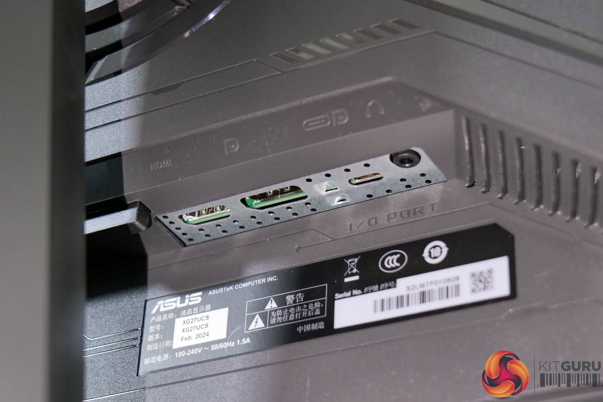 I/O is one of the areas that ASUS has cut back to meet the aggressive price point, given we find a single HDMI 2.1, one DisplayPort 1.4, a USB-C port that supports DP-Alt mode and 15W power delivery, and then a headphone jack. That means just two full-size video inputs, though HDMI 2.1 is at least a good inclusion for use with a console, while there's also no USB passthrough ports, let alone KVM functionality.