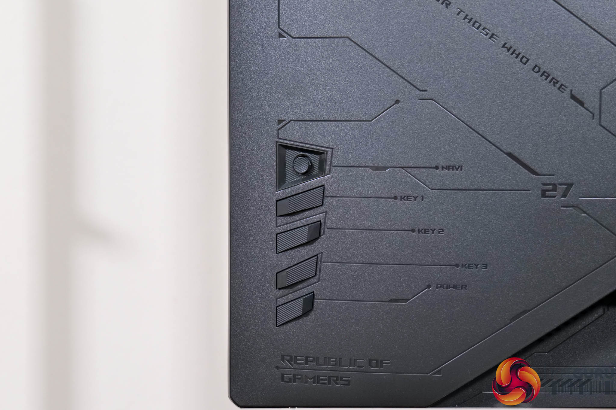 We do, thankfully, find a joystick used to navigate the OSD, along with four other buttons – one for power, two are user-customisable shortcuts, while the other closes the OSD.