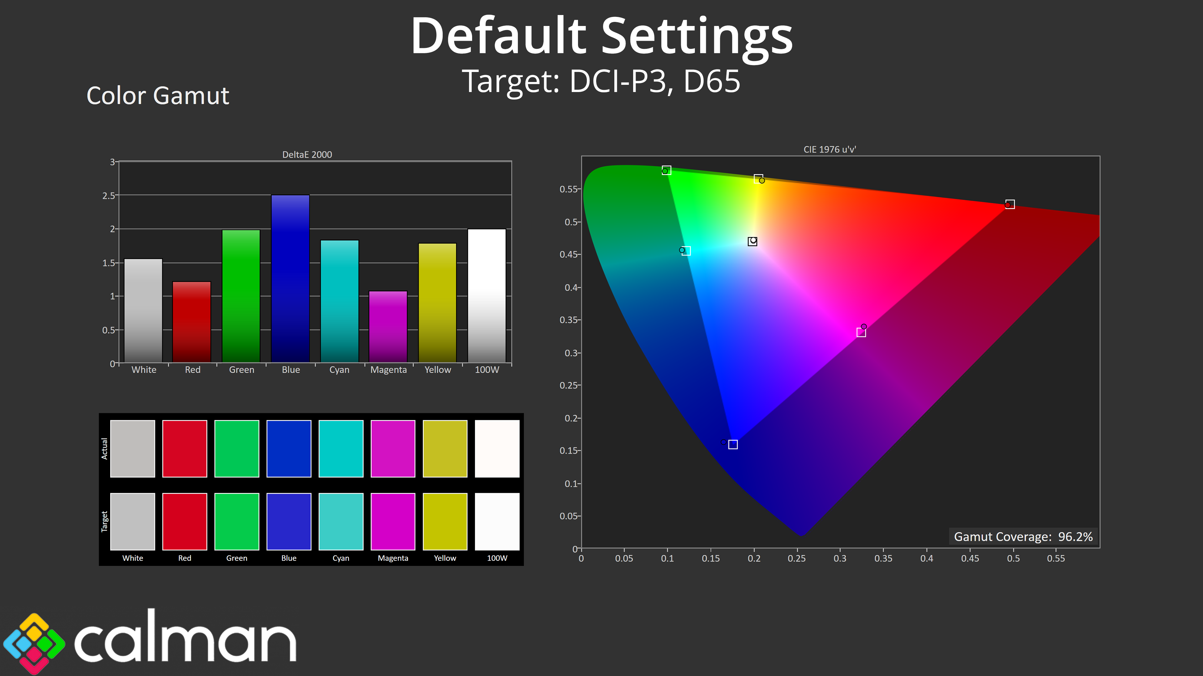 - Gamut coverage, primarily focusing on sRGB and DCI-P3 colour spaces.