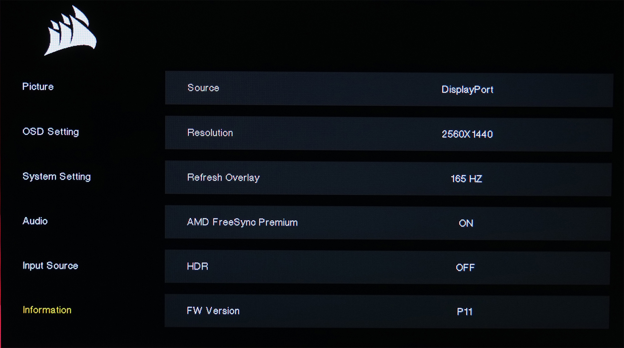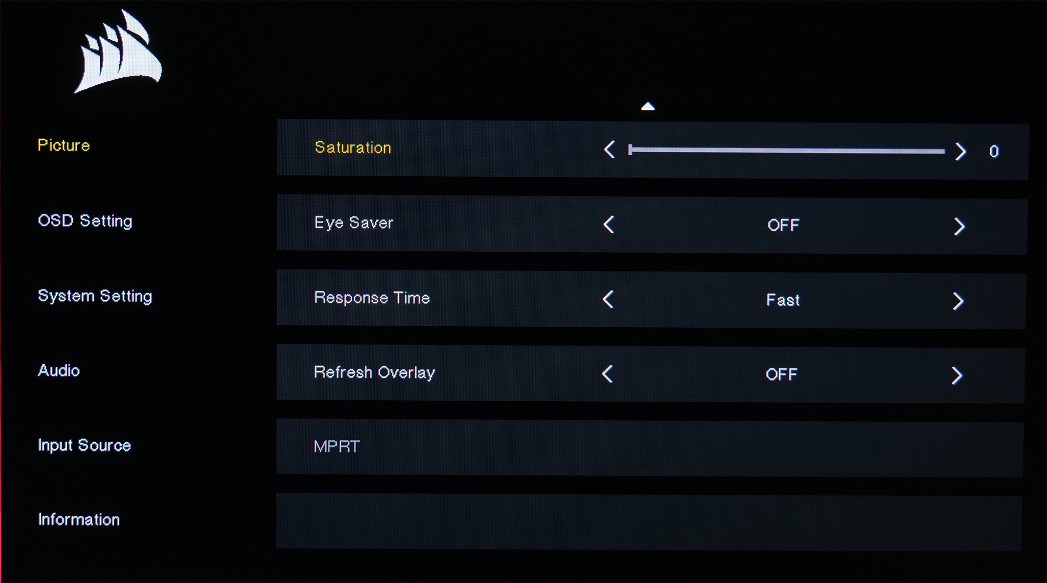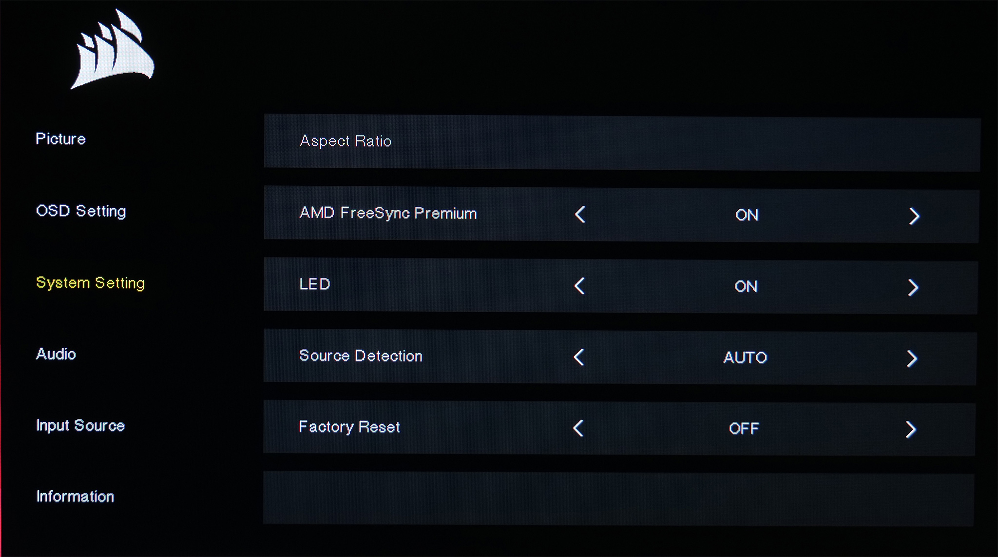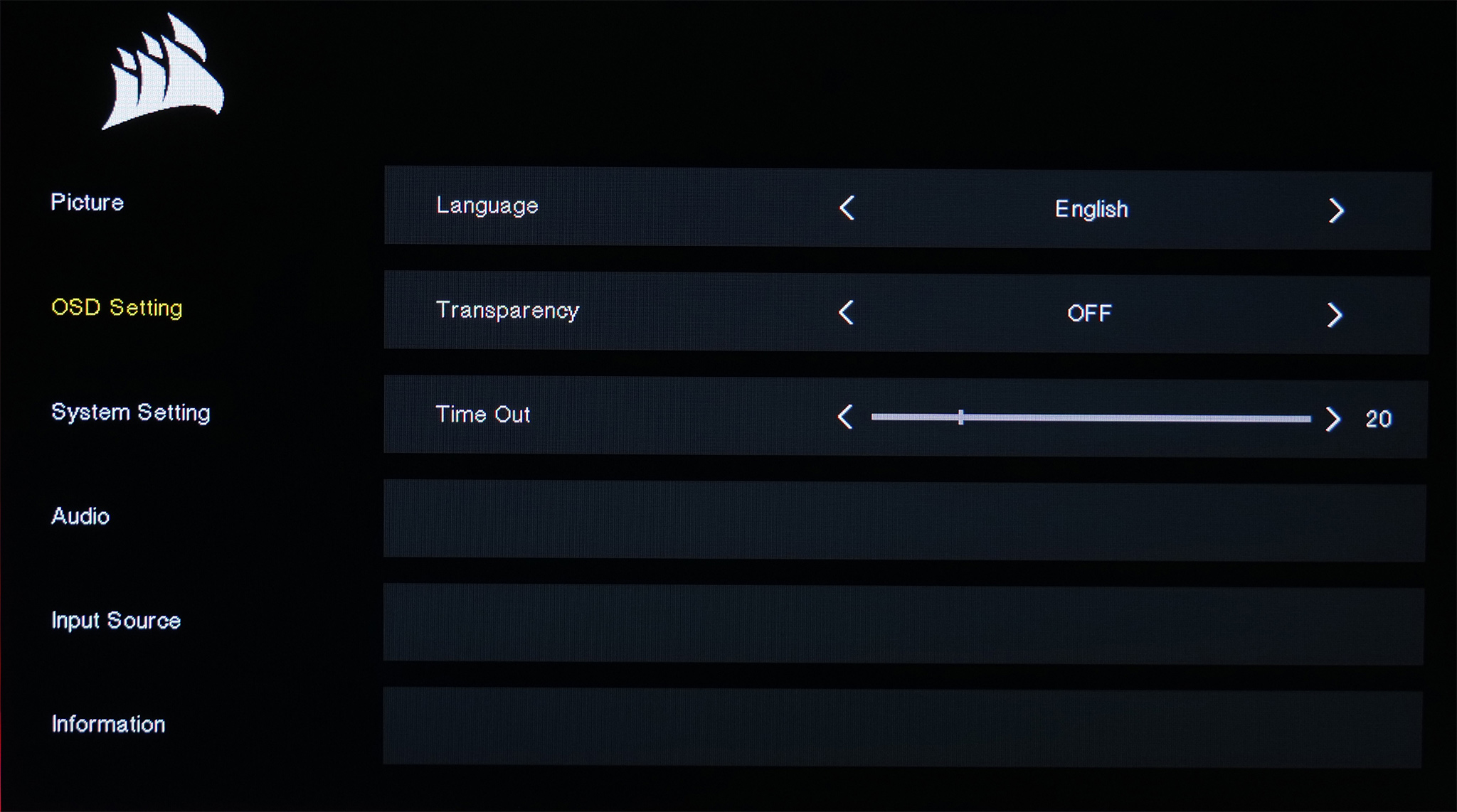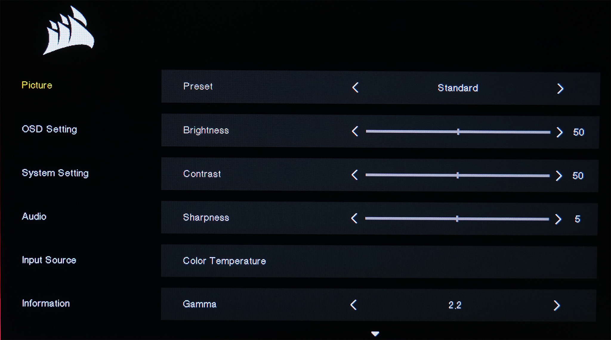 As this is Corsair's first gaming monitor, we weren't quite sure what to expect from the OSD. As it turns out, it is clearly laid out and easy to use, with six main tabs housing all the settings.