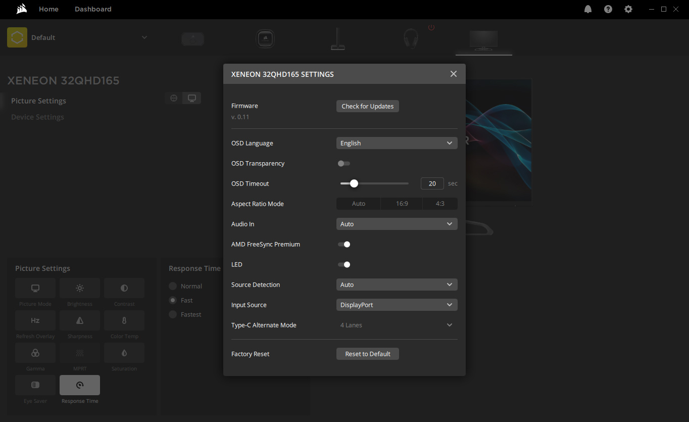 As to what you can tweak and change in iCUE – it's exactly the same settings that are adjustable via the on-screen OSD, only now you can change those settings directly within Windows.