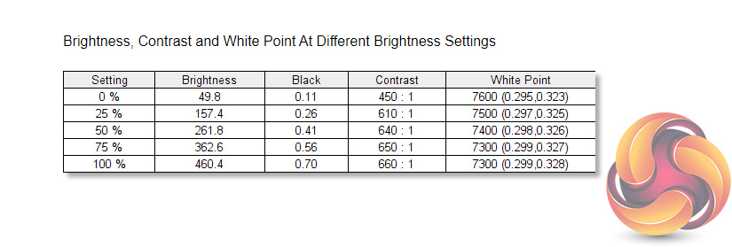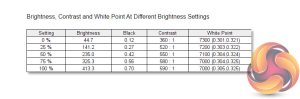 The default colour balance is also slightly cool, hitting 6800K at 1000% brightness, though it is even cooler at lower brightness settings.