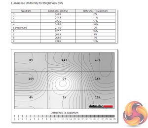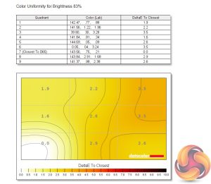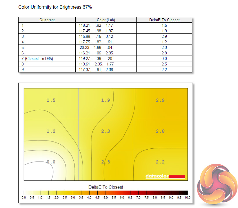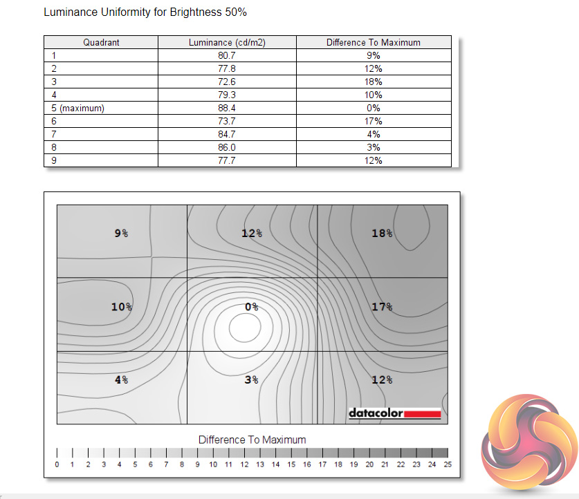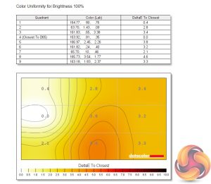 Colour uniformity is more middling however, especially at maximum brightness – if you can get away with using this screen at 50% brightness though, it is not something to worry about.