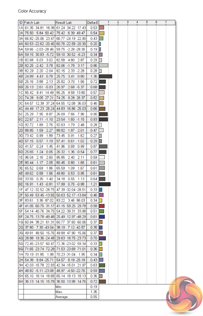 - The colour accuracy, expressed as a Delta E ratio, with a result under 3 being fine for normal use, and under 2 being great for colour-accurate design work.