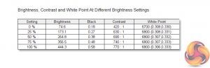 On a more positive note, the white point is very close to the 6500K ideal, coming in very slightly cool at 6700K when tested at maximum brightness. Just a very small tweak would help bring this down.